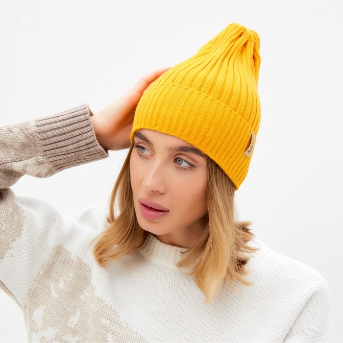 Шапка женская MINAKU "Трюфель" цвет горчица, размер 56-58