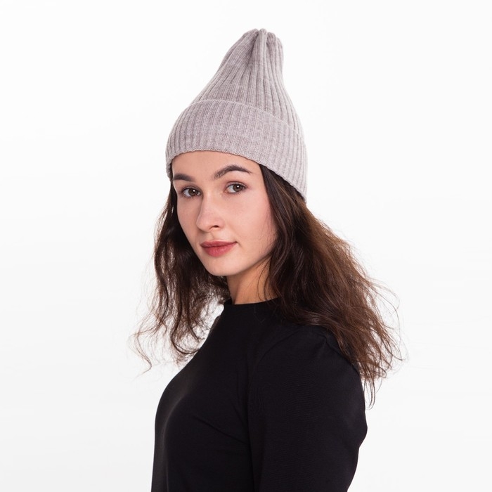Шапка женская зимняя, цвет бежевый, размер 52-56