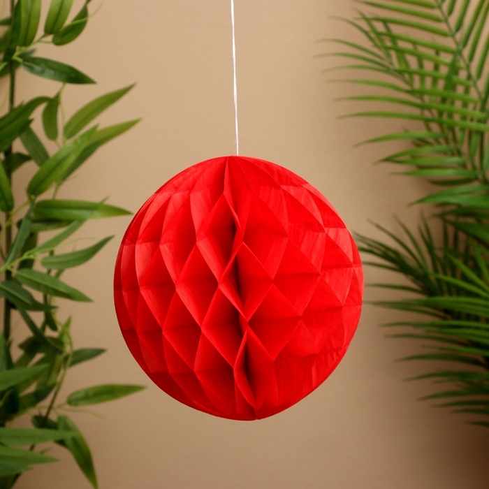 Шар бумажный декоративный, диаметр 20 см, цв. красный
