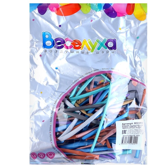 Шар для твистинга 260, зеркальный, хром, набор 50 шт., МИКС