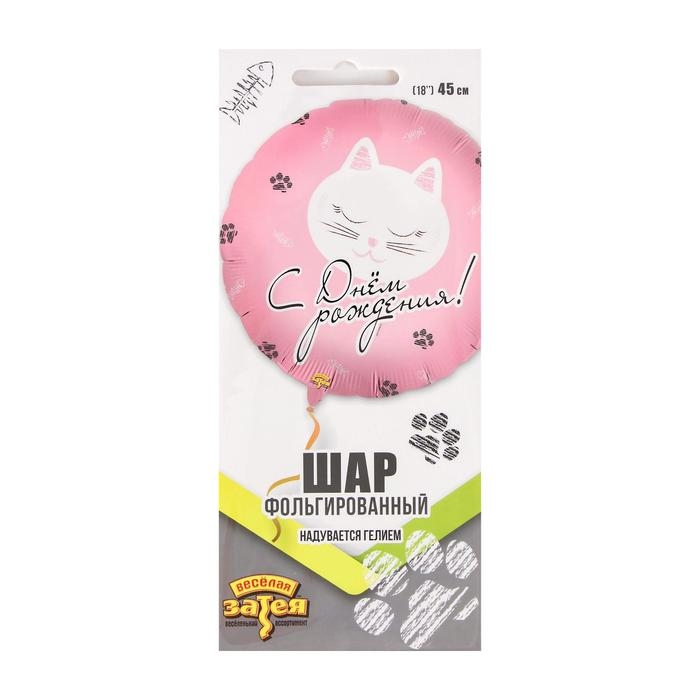 Шар фольгированный 18" «День рождения», котики, круг