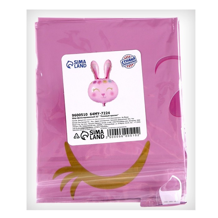 Шар фольгированный 32" «Розовый кролик»