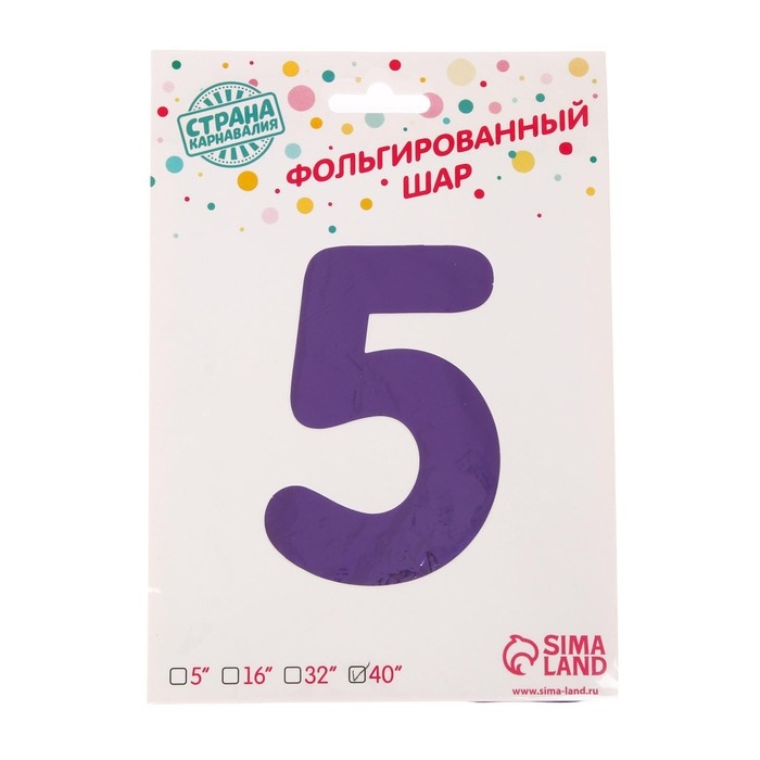 Шар фольгированный 40" «Цифра 5», цвет сиреневый, 1 шт.