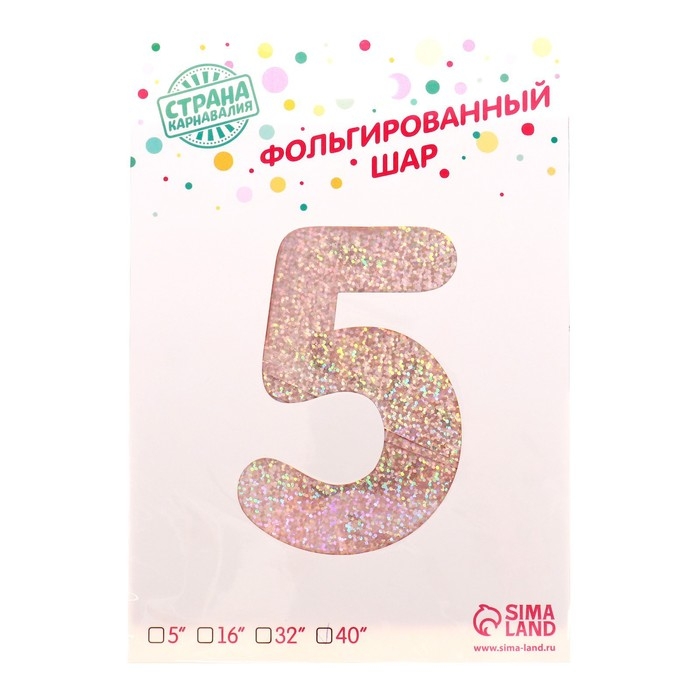 Шар фольгированный 40" «Цифра 5», голография, розовое золото