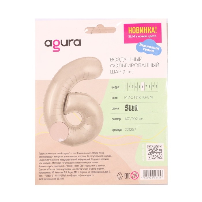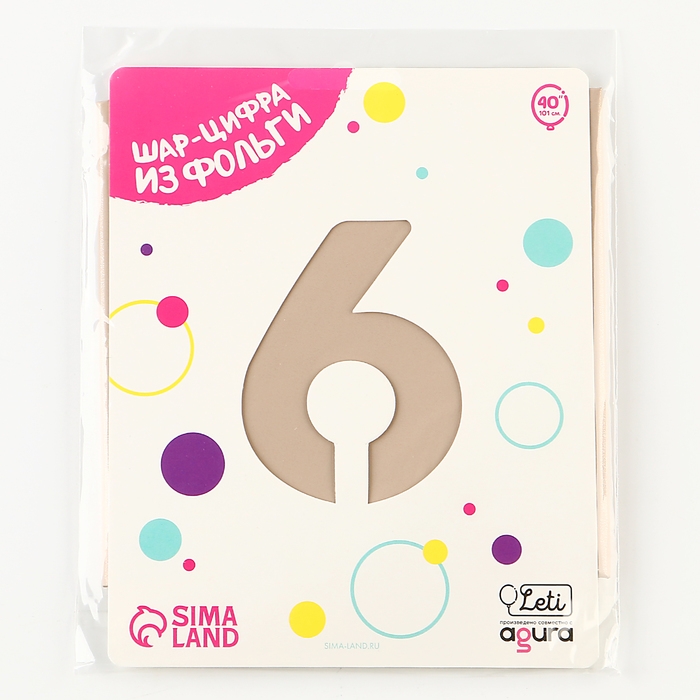 Шар фольгированный 40'' «Цифра 6», Slim, мистик крем