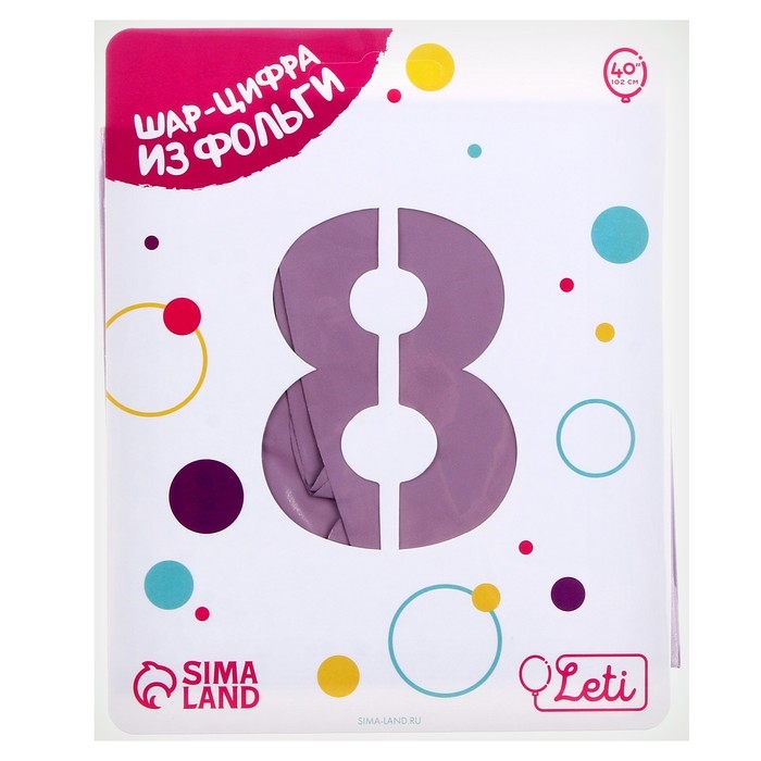 Шар фольгированный 40" «Цифра 8», орхидея Slim