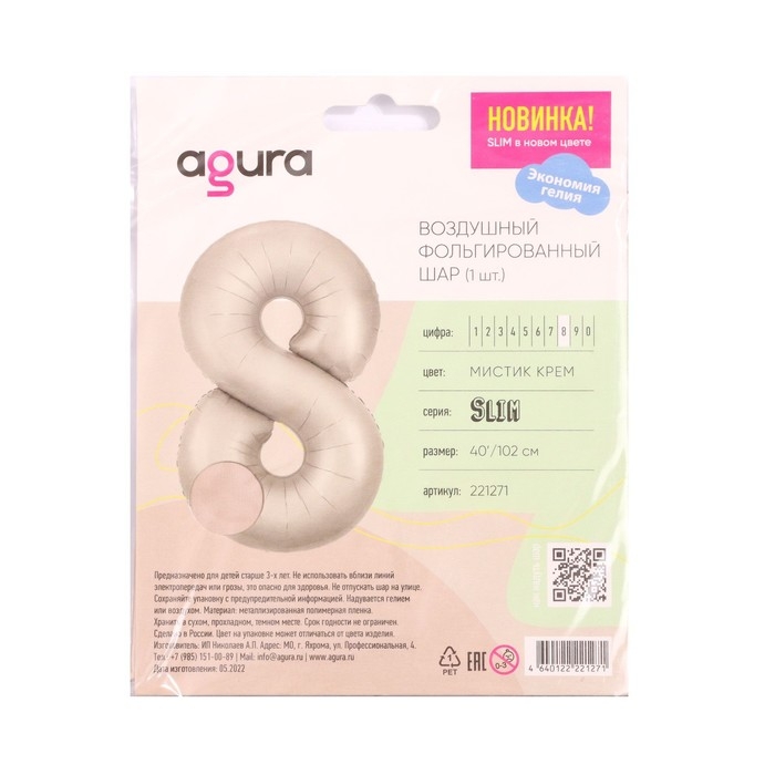 Шар фольгированный 40'' «Цифра 8», Slim, мистик крем