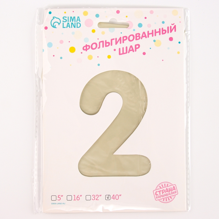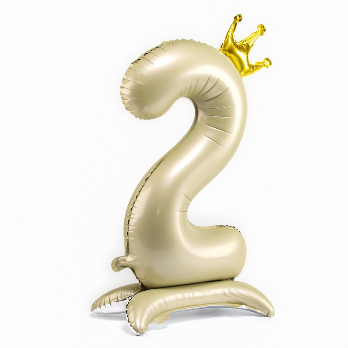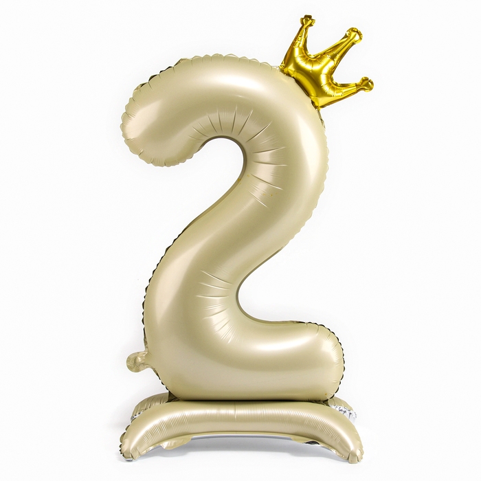 Шар фольгированный 42" «Цифра 2 с короной» на подставке, цвет взбитые сливки