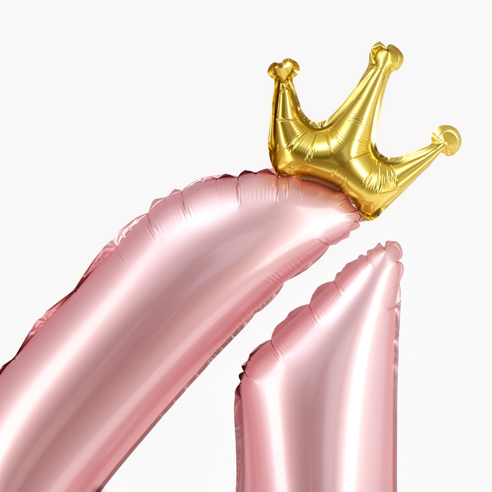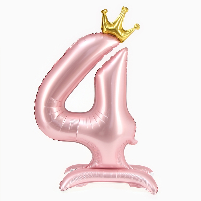 Шар фольгированный 42" «Цифра 4 с короной» на подставке, цвет розовый