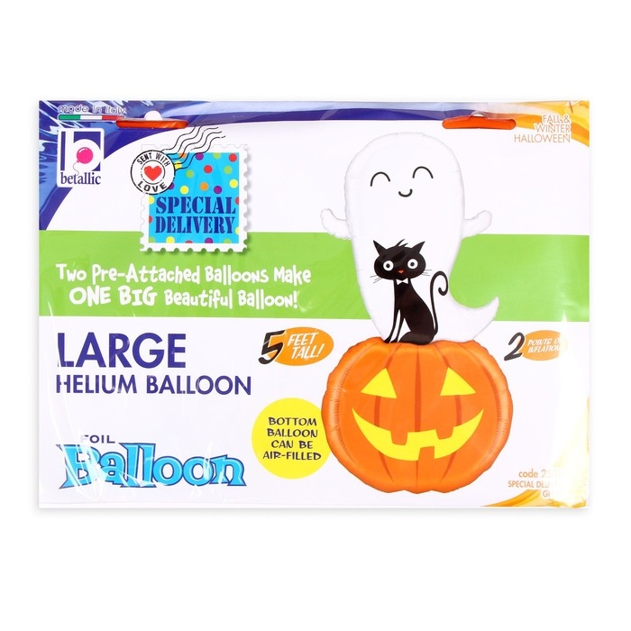Шар фольгированный 60" «Привидение с котёнком» — идеальный выбор для создания атмосферы на Хэллоуин или тематическую вечеринку. Этот шар станет центральным элементом декора, подчёркивающим стиль мероприятия. Можно надувать и воздухом и гелием.