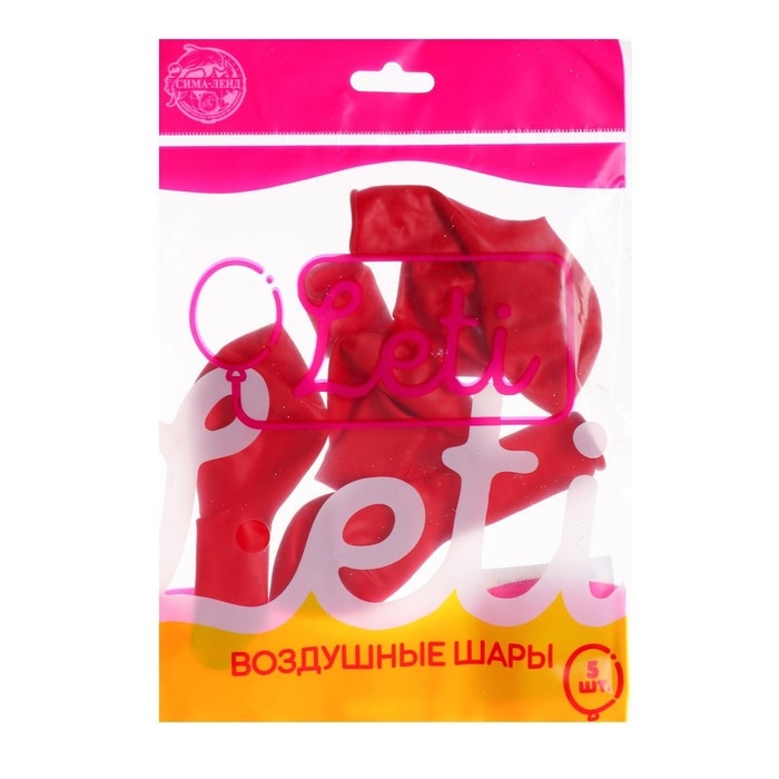 Шар латексный 10", пастель, набор 5 шт., цвет красный