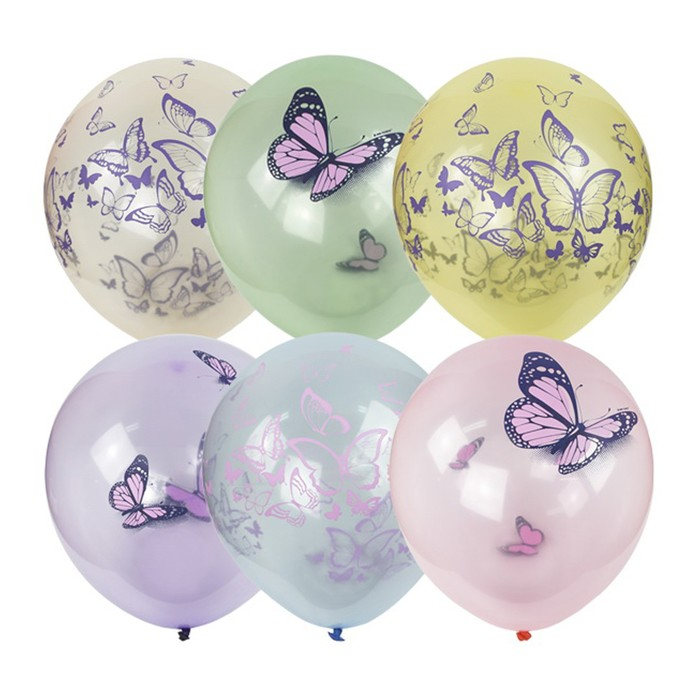 Шар латексный 12" «Бабочки», кристалл bubble, ассорти, набор 25 шт.