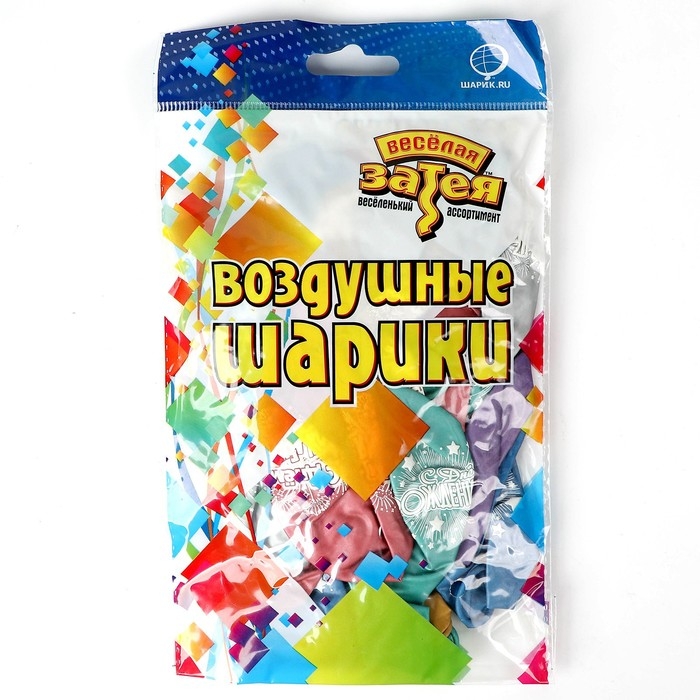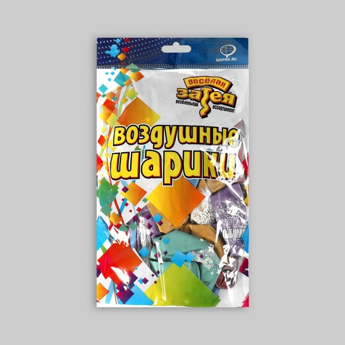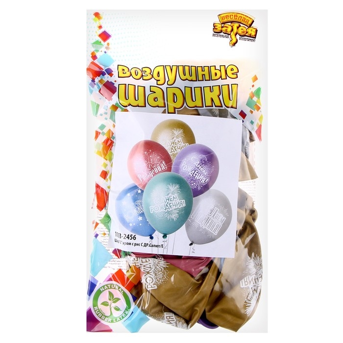 Шар латексный 12" «ДР Салют», хром с рис., набор 25 шт.