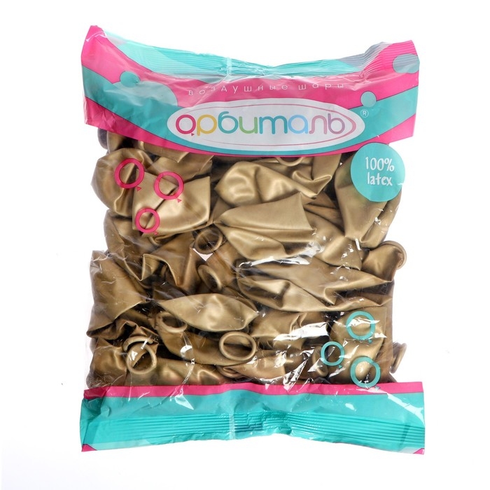 Шар латексный 12", хром, набор 50 шт., цвет золото