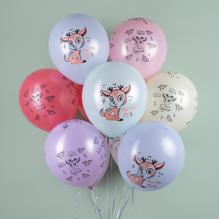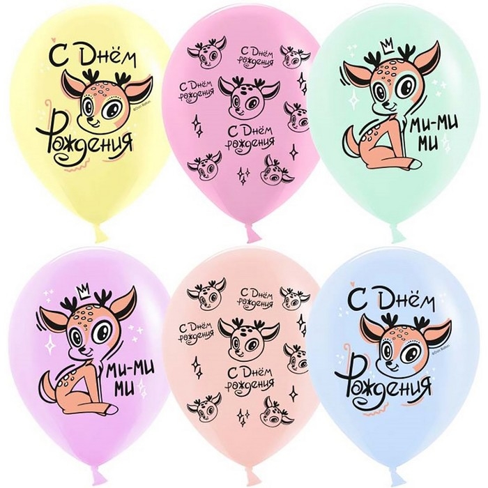 Шар латексный 12" «Оленёнок в цветах», ассорти, макарунс, 5 ст., набор 25 шт., МИКС