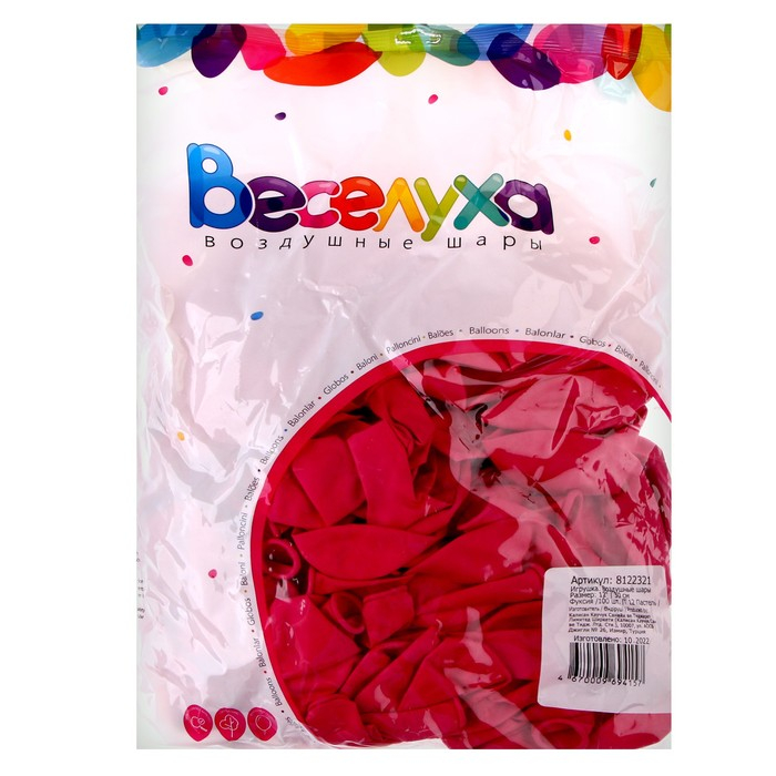 Шар латексный 12", пастель, набор 100 шт., цвет фуксии