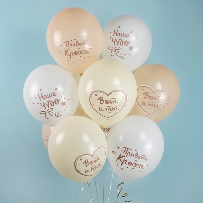 Шар латексный 12" «Привет Кроха, Наше Чудо», ассорти, пастель, 2 ст., набор 25 шт.. МИКС