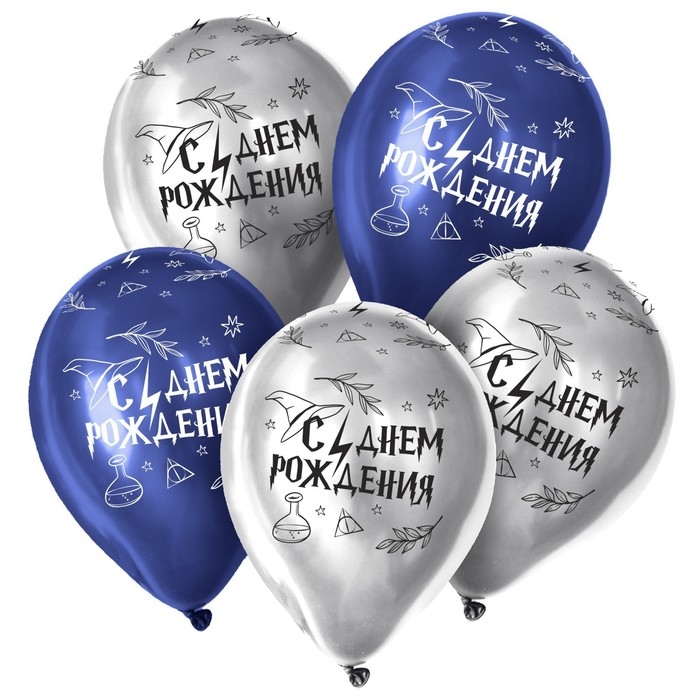 Шар латексный 12" "С Днем рождения. Магия", пастель, 5 шт.