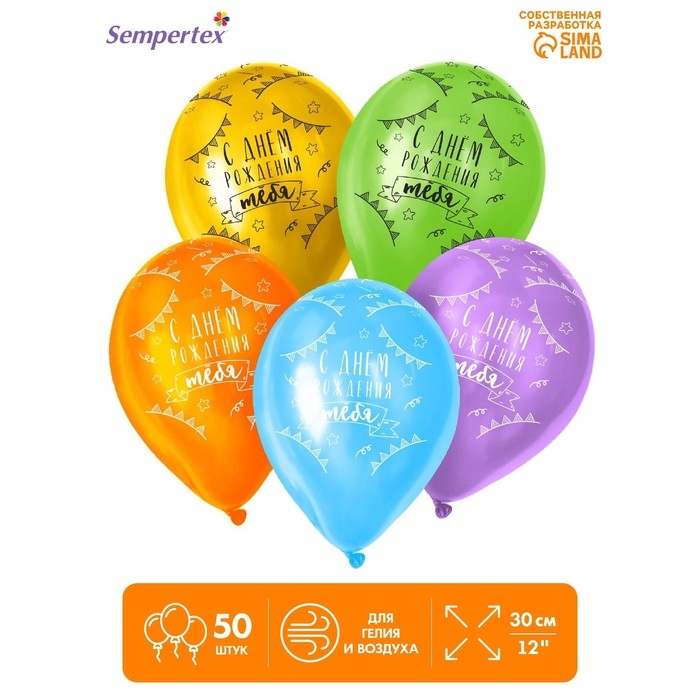 Шар латексный 12" «С Днём рождения, тебя..», пастель, набор 50 шт., цвета МИКС