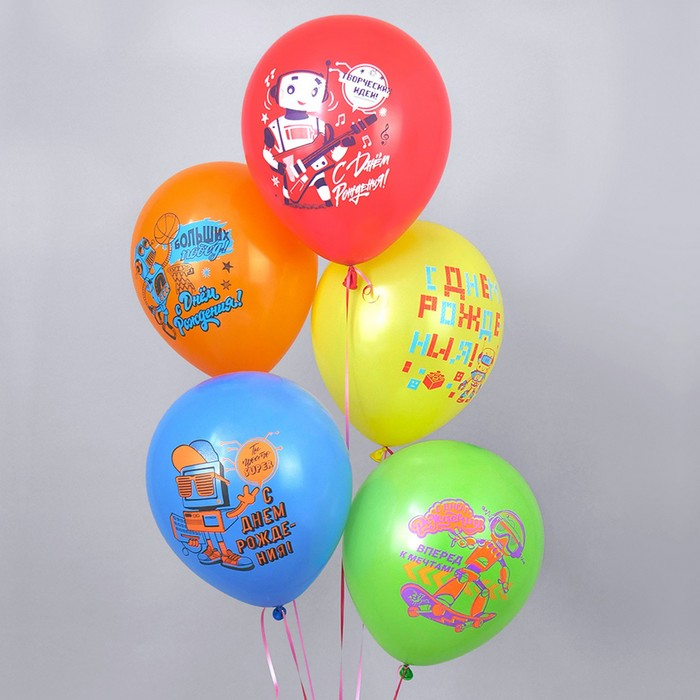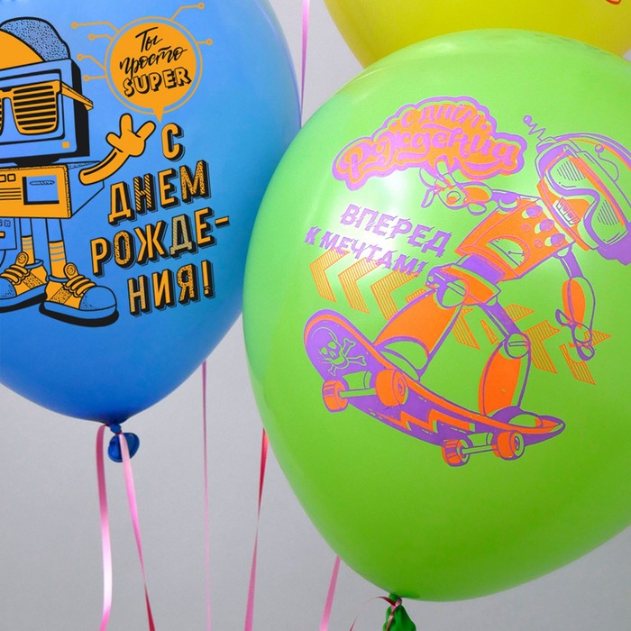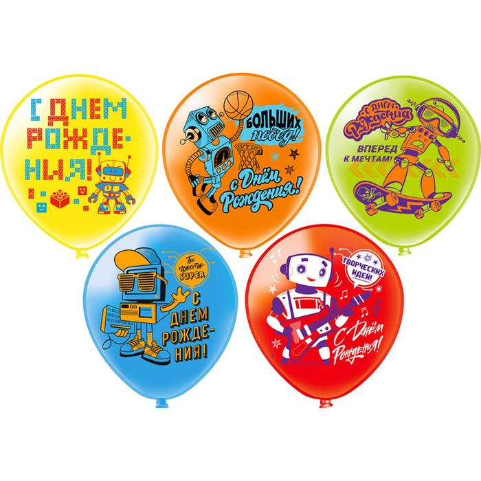 Шар латексный 12" «С ДР! Роботы!», пастель, 1-сторонний, 5 дизайнов, набор 25 шт., МИКС