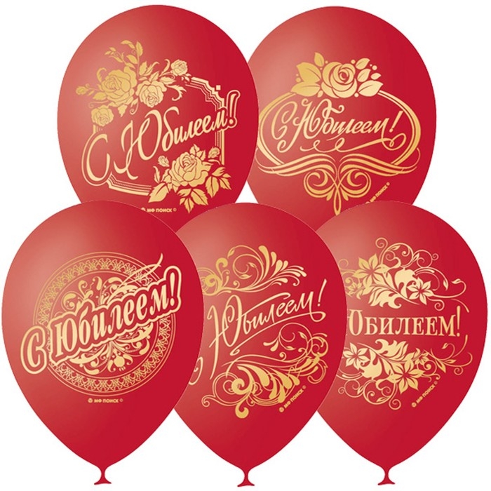 Шар латексный 12" «С юбилеем!», декоратор, 2-сторонний, набор 25 шт., цвет красный