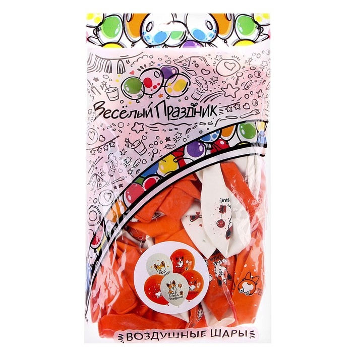 Шар латексный 12" «Весёлый корги» 2 цв., 2 ст., набор 50 шт.