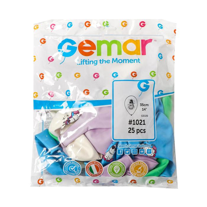 Шар латексный 14" «Единорог и звёзды» 5 цв., набор 25 шт.