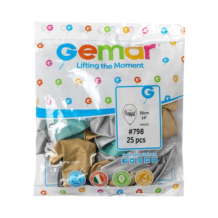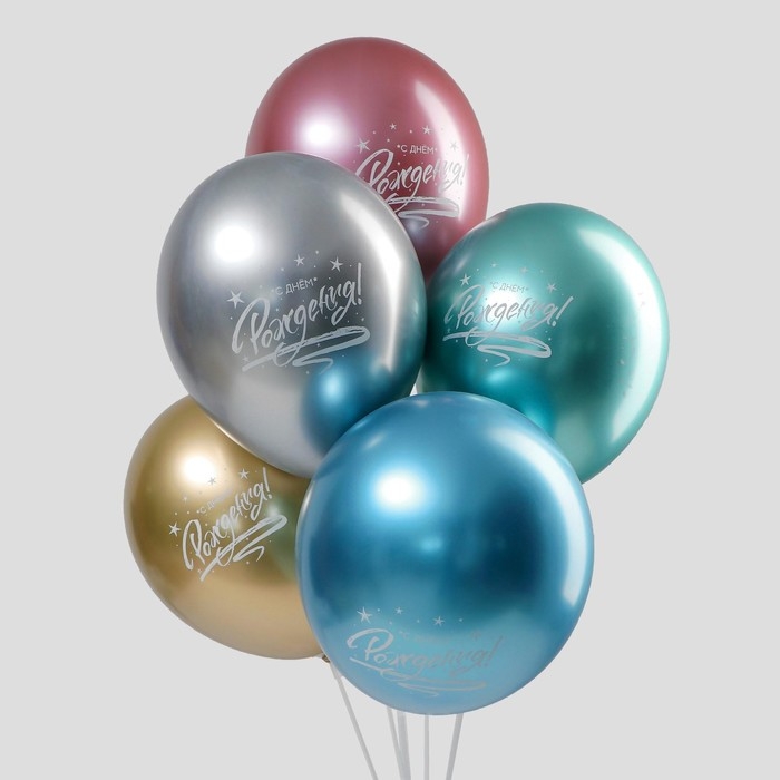 Шар латексный 14" «С днём рождения» хром, набор 25 шт.
