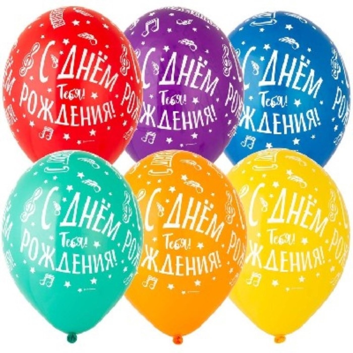 Шар латексный 14" «С днём рождения тебя!», ноты, пастель, шелкография, набор 25 шт., МИКС