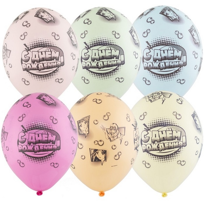 Шар латексный 14" «С ДР. Аниме», набор 5 шт., МИКС