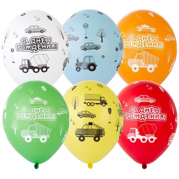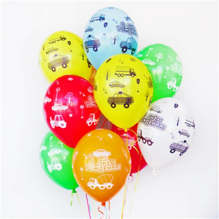 Шар латексный 14" «С ДР. Машинки», пастель, набор 25 шт., МИКС