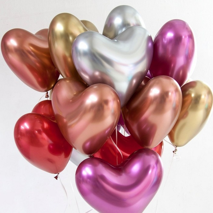 Шар латексный 14", сердце, Reflex, хром, набор 50 шт., цвет розовый (909)