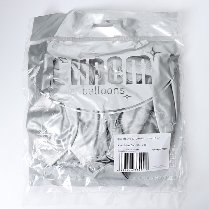 Шар латексный 18", хром, серебро, набор 10 шт.
