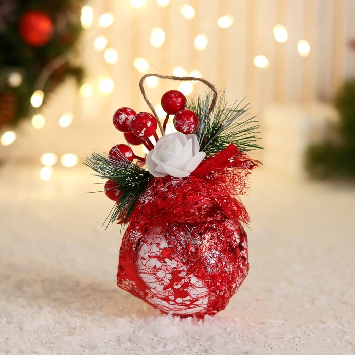 Шар пластик декор "Блеск рождества" поталь, 8х12 см, бело-красный