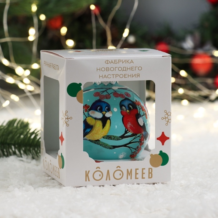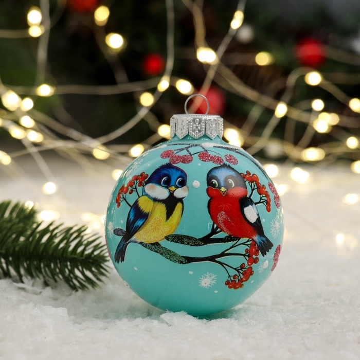 Шар "Праздничные синичка и снегирь", 80 мм., в подарочной упаковке