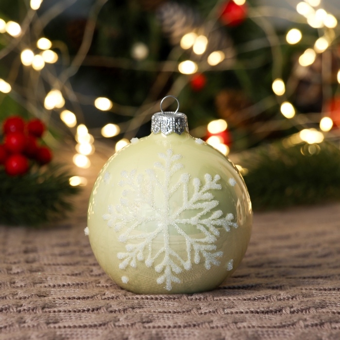Шар "Снежинка бисерная", молочная 80 мм., в подарочной упаковке