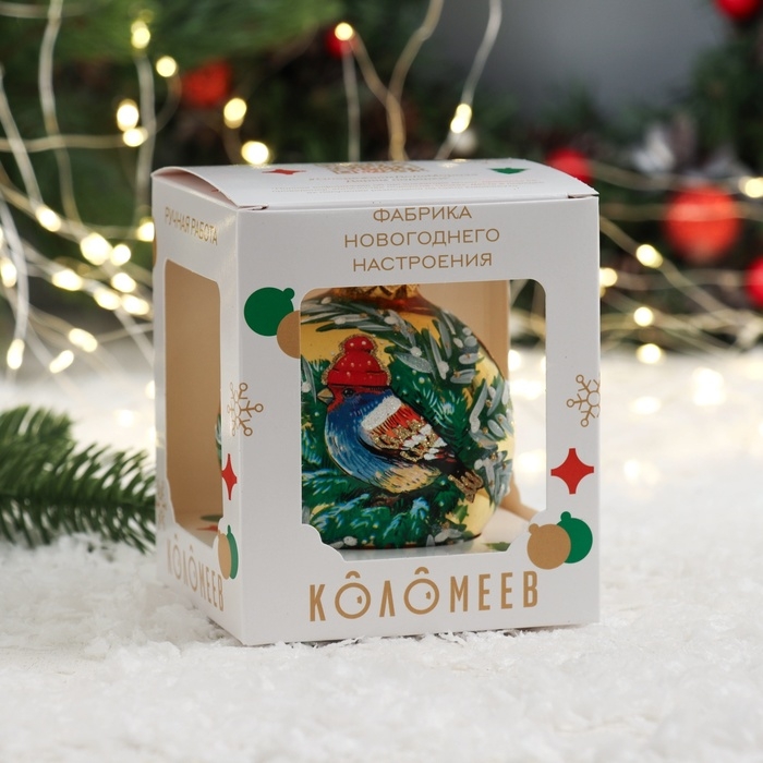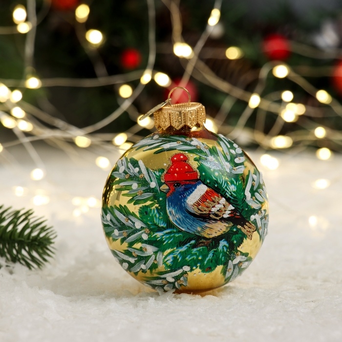 Шар "Воробей в шапочке", 80 мм., в подарочной упаковке