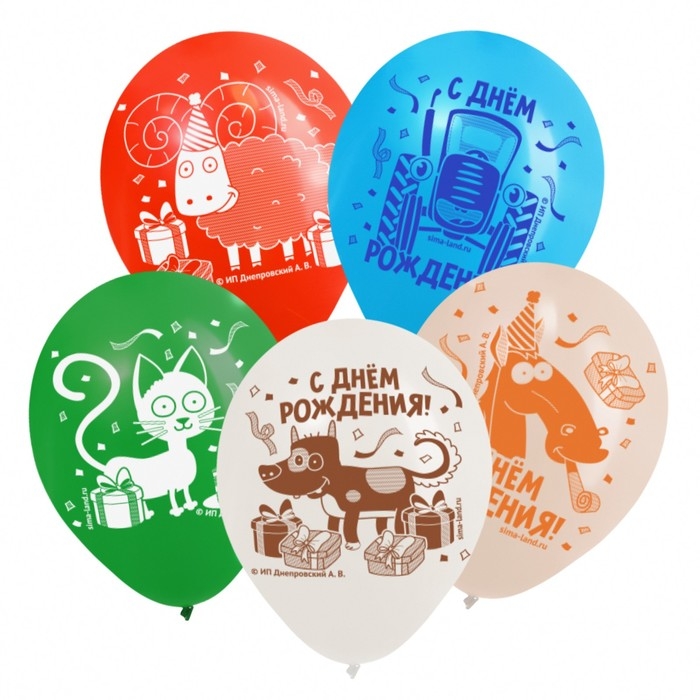 Шар воздушный "С Днем рождения!", 12 дюйм, латексный, 5 штук, Синий трактор