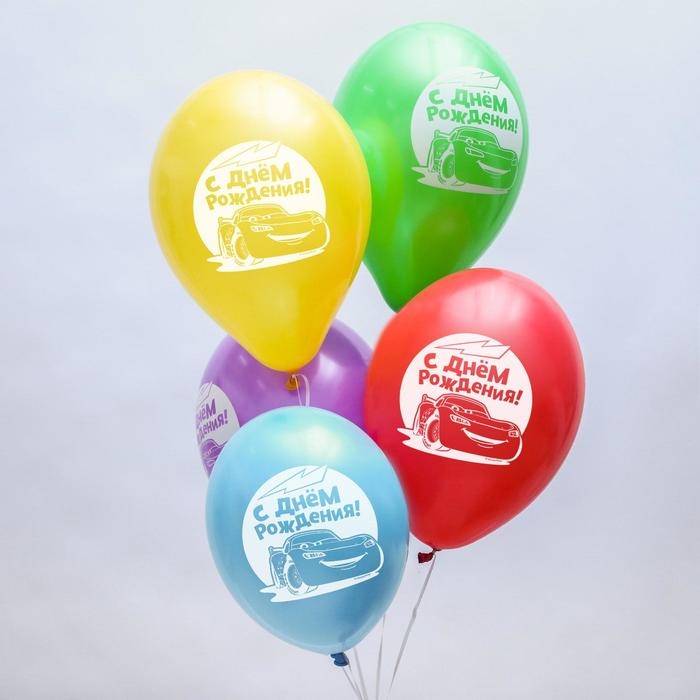 Шар воздушный "С Днем рождения!", 12 дюйм, латексный, 5 штук, Тачки