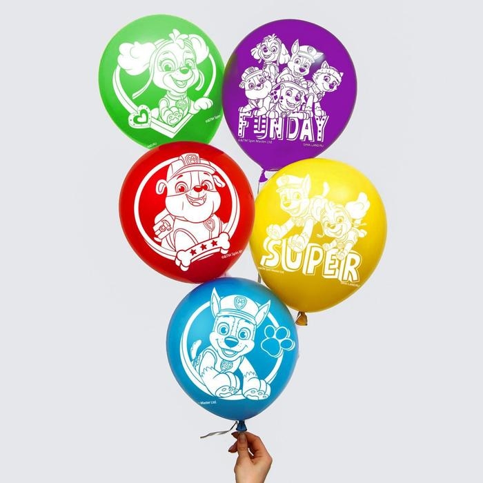 Шар воздушный "Супер", 12 дюйм, латексный, 5 штук, Щенячий патруль