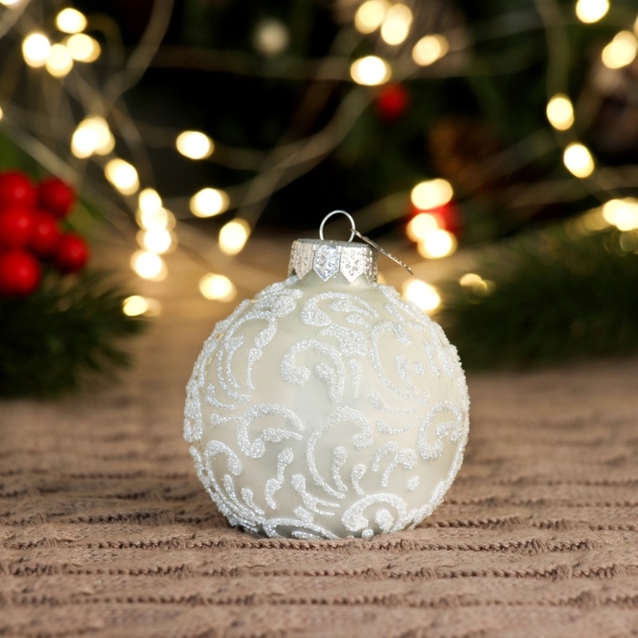 Шар "Вьюнок-веточка морозная" (белый), 65 мм., в подарочной упаковке