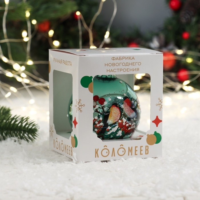 Шар "Зимние птицы2", 80 мм., в подарочной упаковке