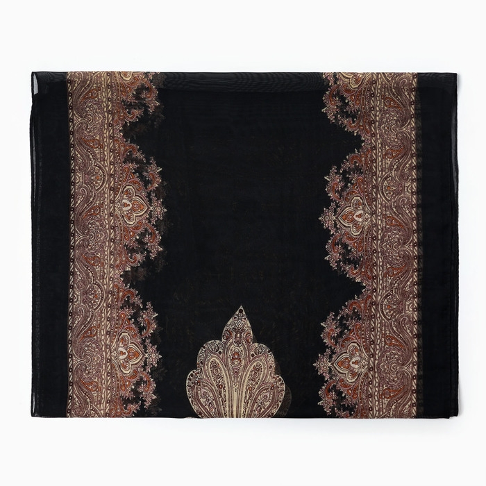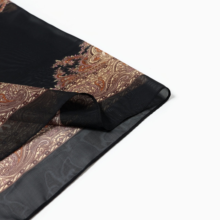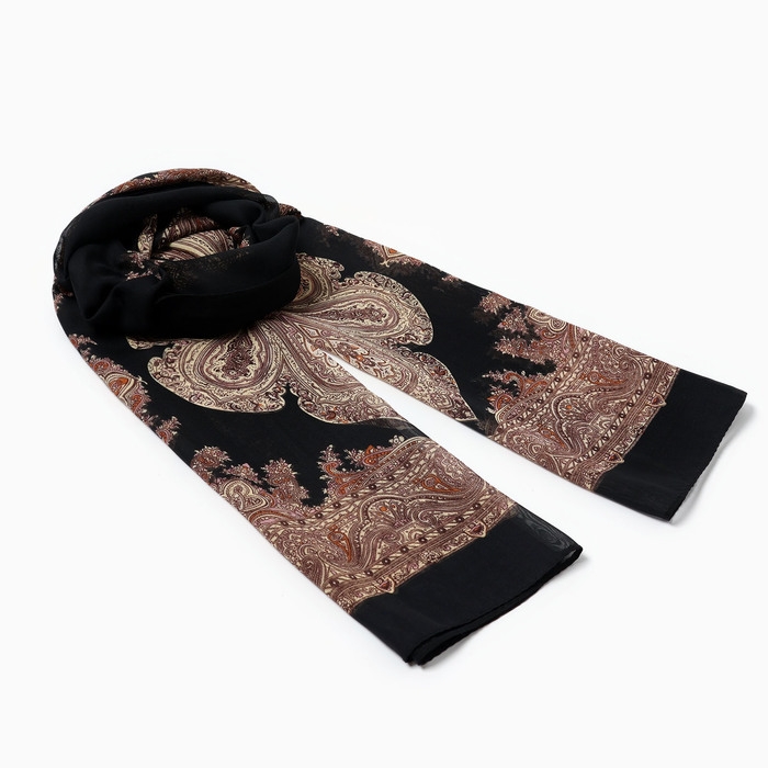 Шарф текстильный женский, черный/бежевый, р-р 50*160