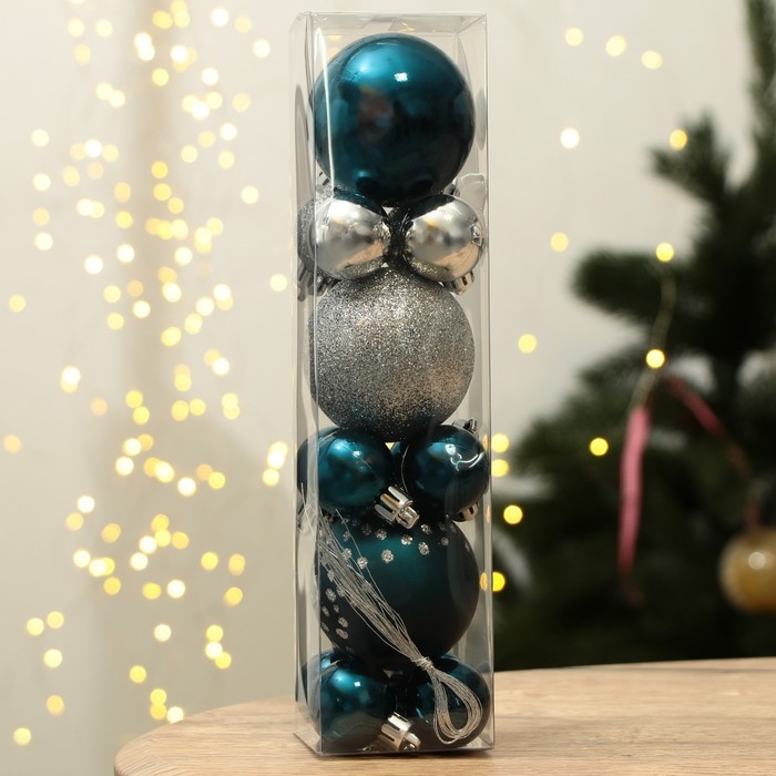 Шары ёлочные новогодние, на Новый год, d=3 и d=6, 15 шт., цвет синий и серебристый