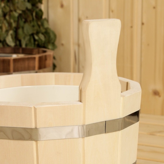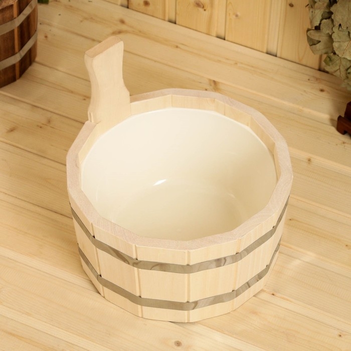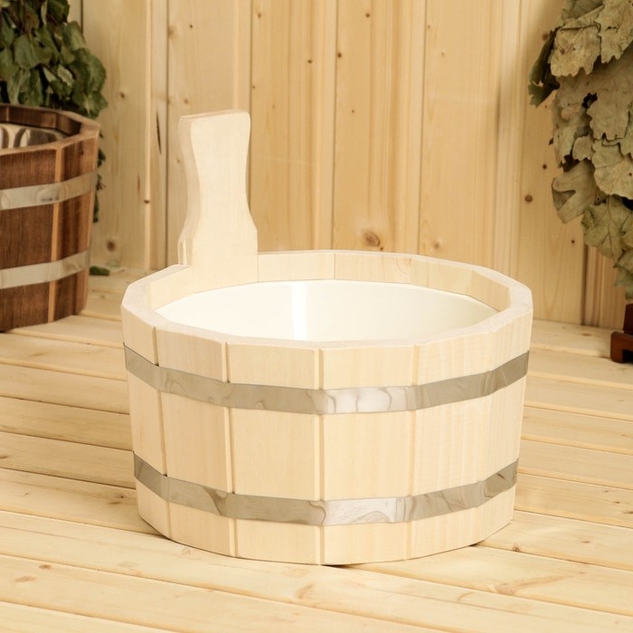 Шайка деревянная, 5 л, круглая, ЛИПА, пластиковая вставка FT