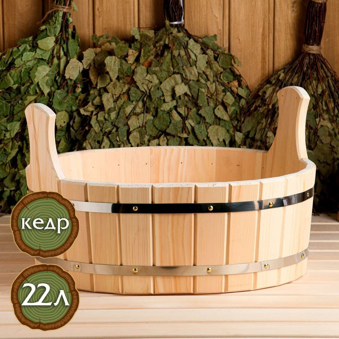 Шайка из кедра овальная, 22 л, двуручная ЛЮКС