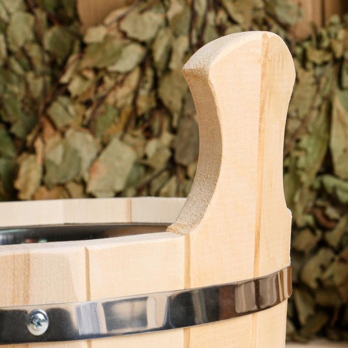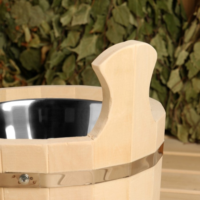 Шайка из липы, 15 л, двуручная, нержавеющая вставка