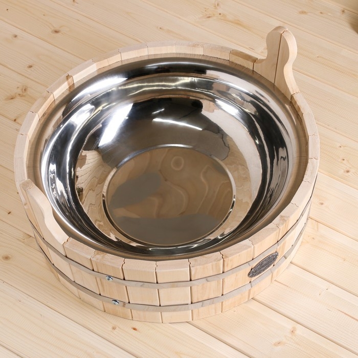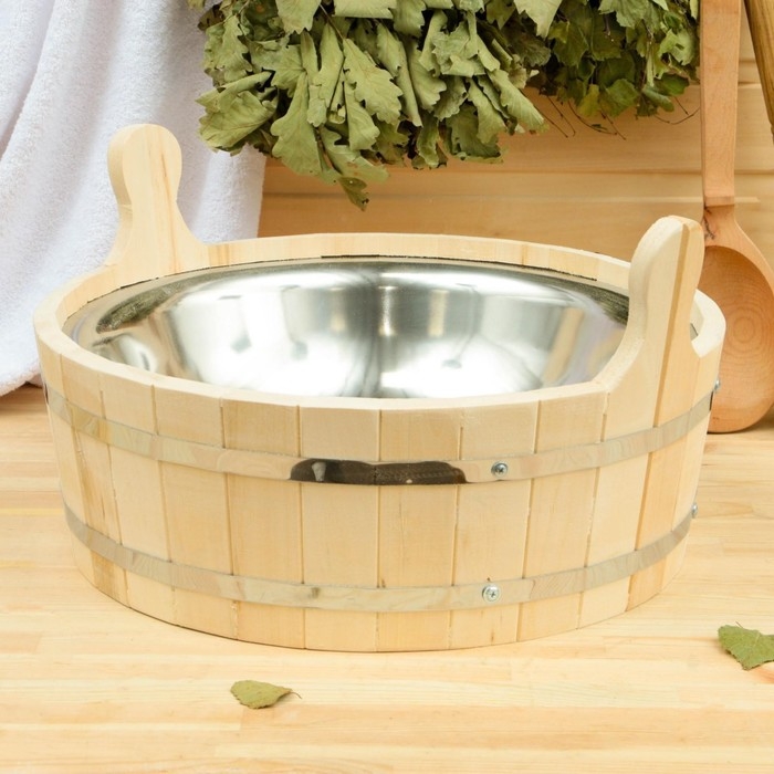 Шайка-таз из липы, 6 л, с нержавеющей вставкой, двуручная