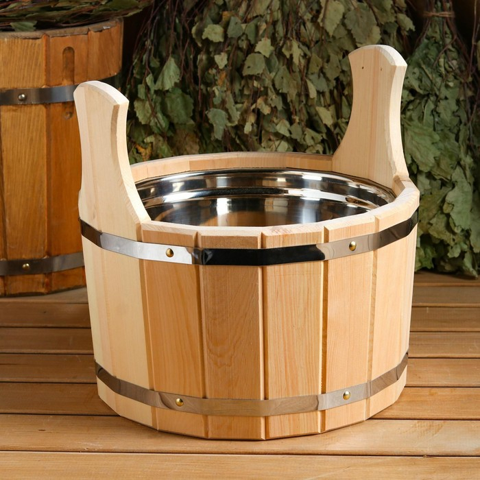 Шайка из липы, 15 л, двуручная, нержавеющая вставка