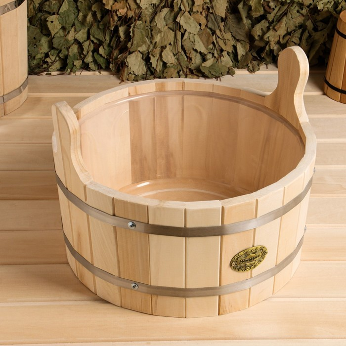 Шайка-таз из липы, 10 л, круглая, пластиковая вставка, "Добропаровъ"